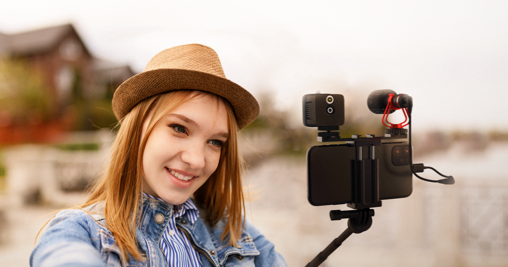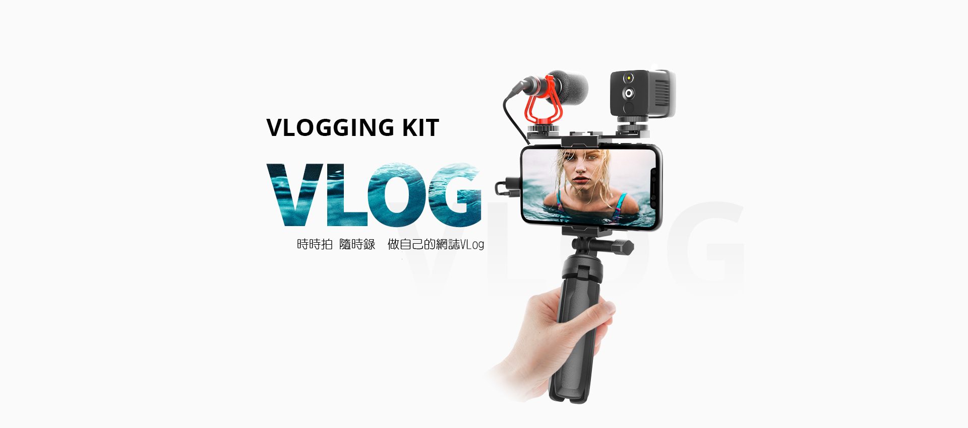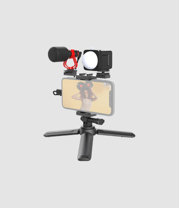 延伸桿 + 腳架+麥克風 + 可調色溫LED補光燈 + 多功能熱靴手機夾,讓創作一次滿足所有該有的配件!