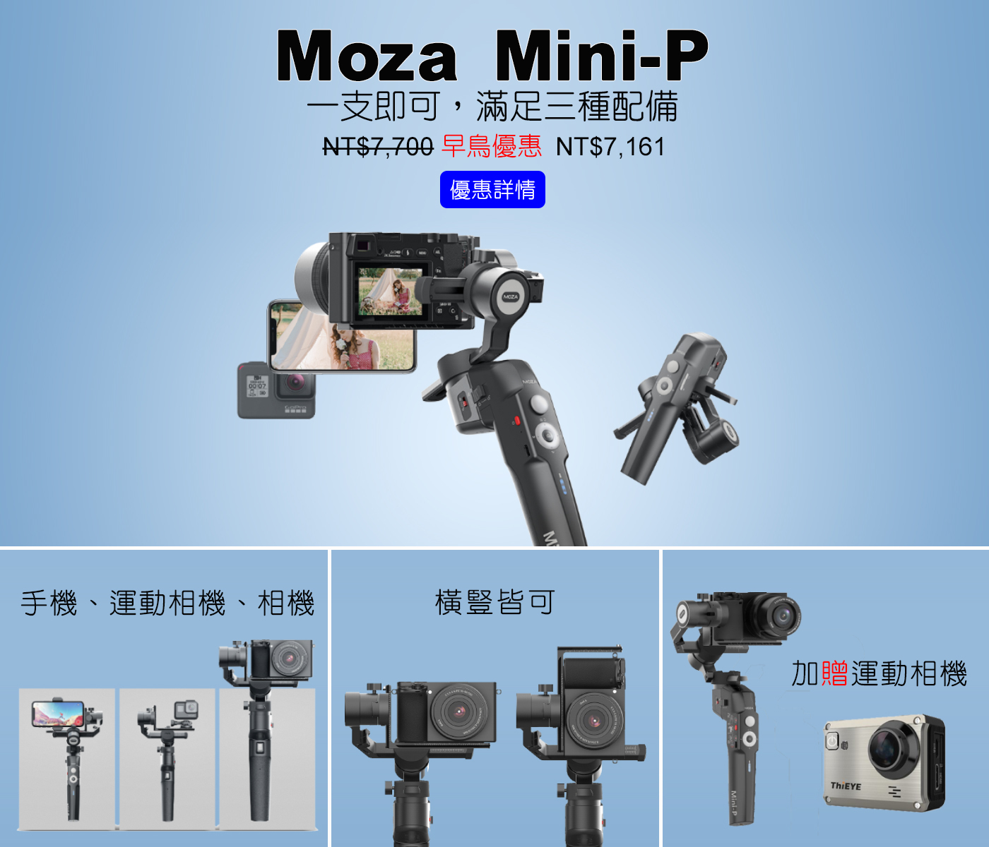 ▌Mini-P 一隻穩定器滿足三種配備