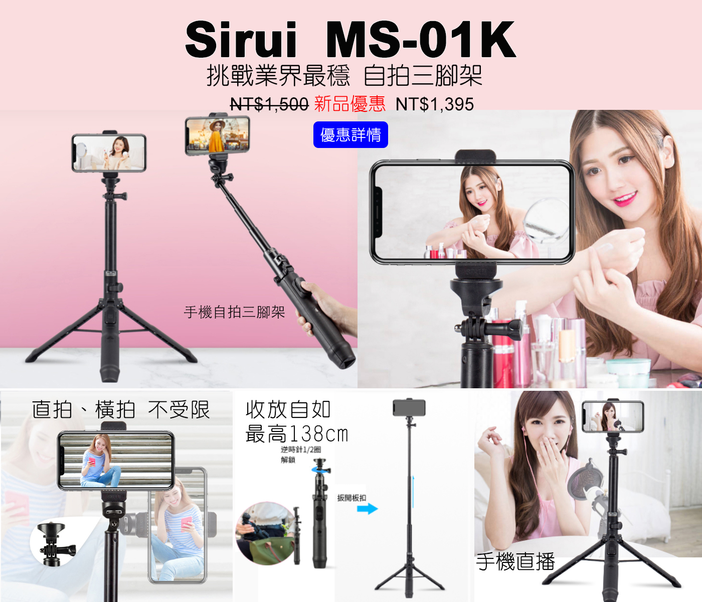 ▌MS-01K 男女孩都必備手機自拍三腳架