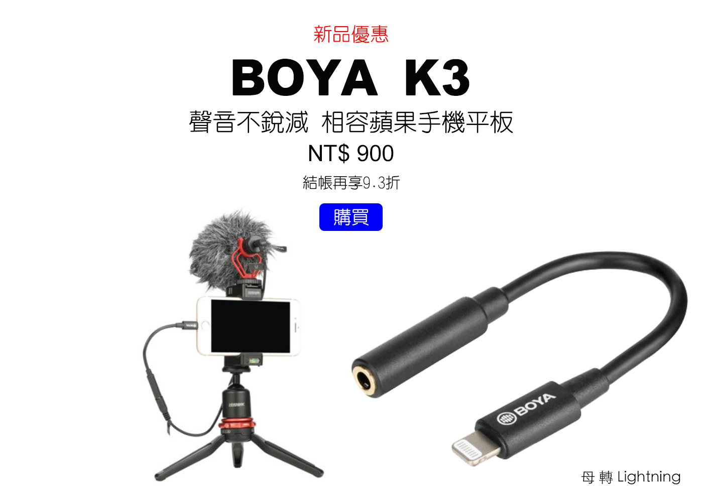 ▌Boya轉接線 已經有了麥克風,給手機使用最省錢的辦法