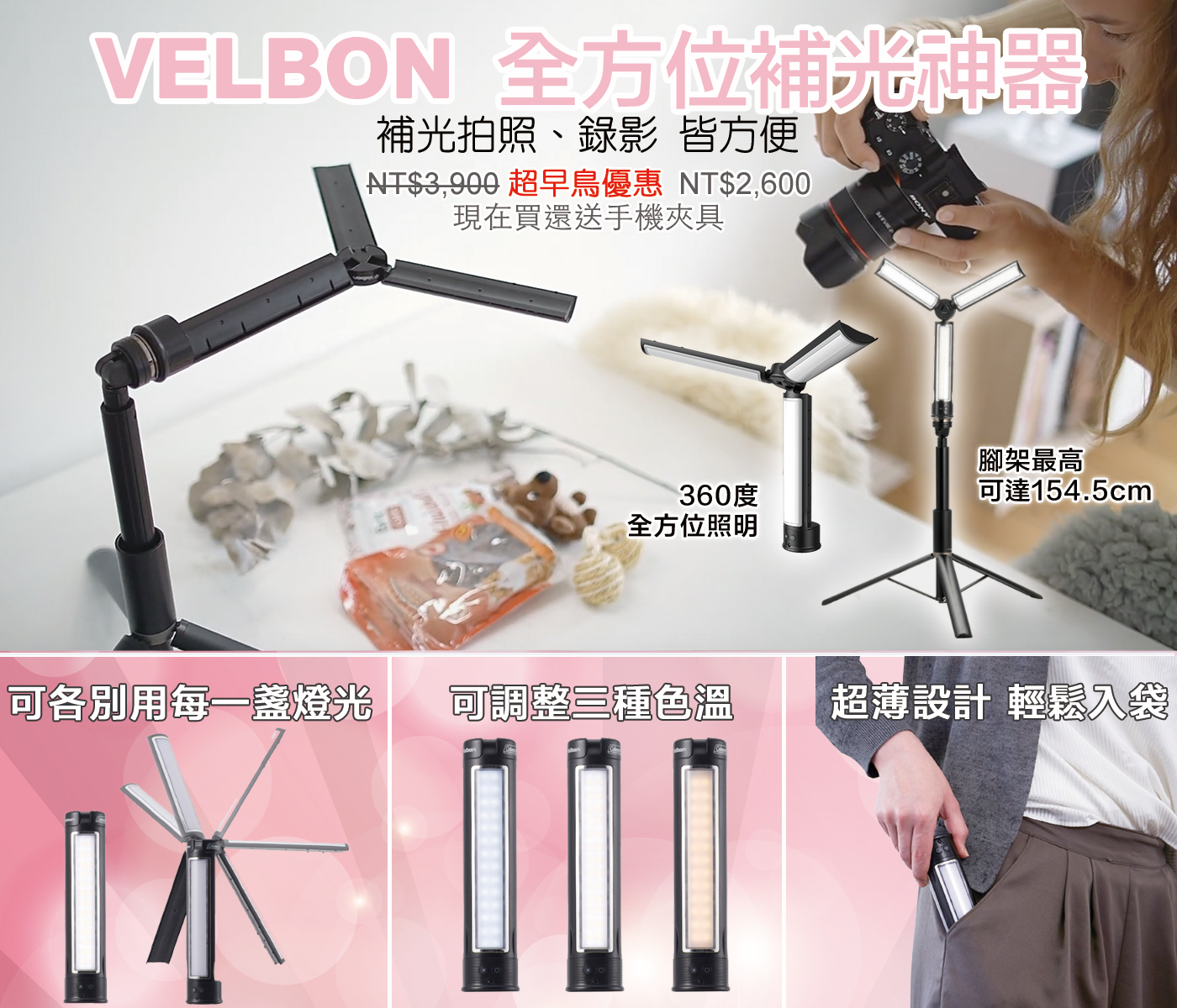▸ 詢問度空前爆表 ☞VELBON 全方位多功能補光神器