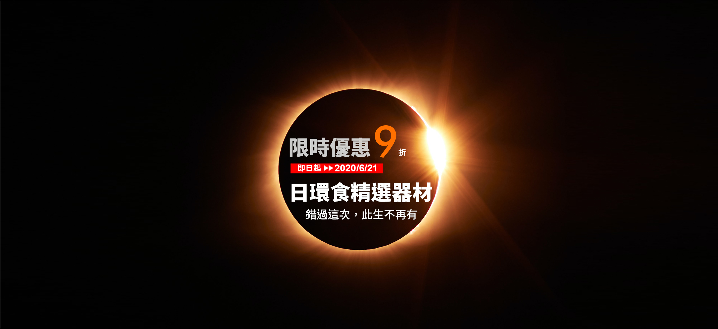 即日起~2020/6/21 日環食精選器材 全面 9折