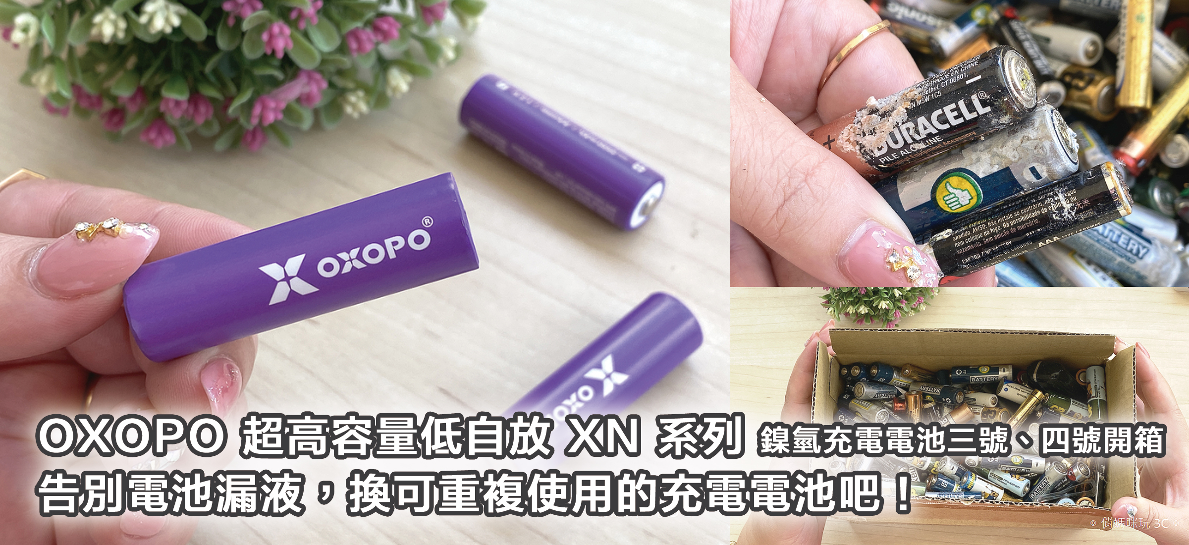 推薦OXOPO XN系列電池,因為超高容量、低自放電,即使放了一年,下次再用電力都保有85%。