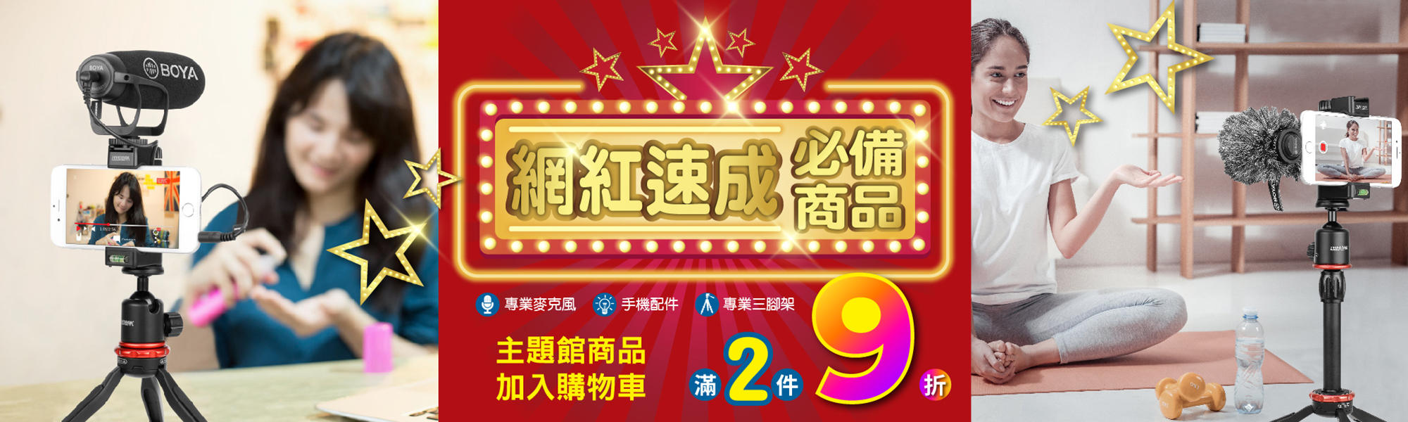 網紅速成必備商品 指定品項滿2件結帳再享9折