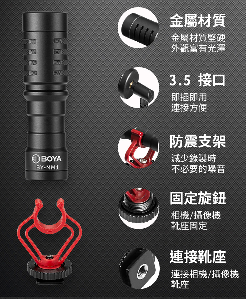 ■ 配備有BY-MM1麥克風,手機夾,球形雲台,