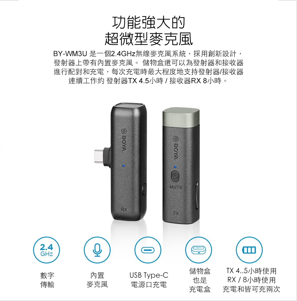 ■ 帶充電盒的快速充電,更長的連續錄製時間