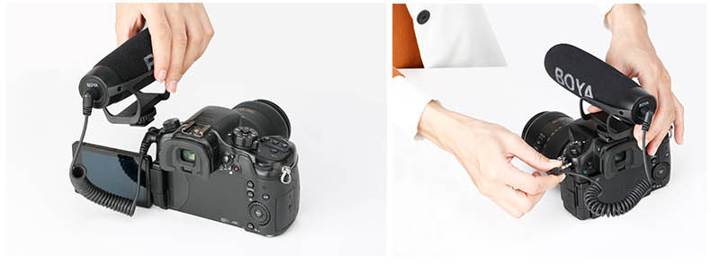 (1)使用單反錄音線,分別插入麥克風輸出口與單反的MIC接口中,