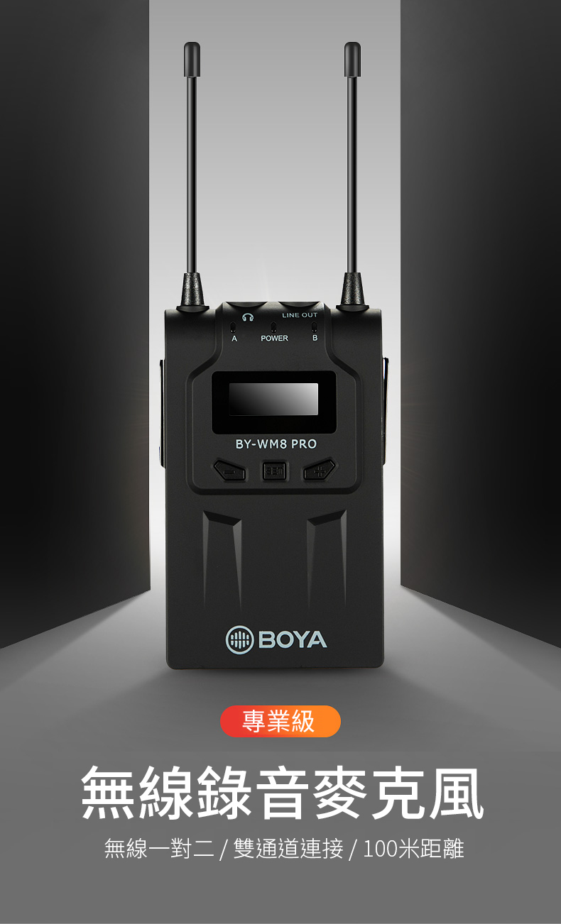 BOYA RX8 Pro是一款緊湊堅固的腰包音頻接收器。有兩個通道,它可以同時使用兩個發射器,它與BY-WXLR8,BY-WHM8,BY-WM8T和BY-WM6發射器(作為發射器A)(發射器單獨出售)兼容。