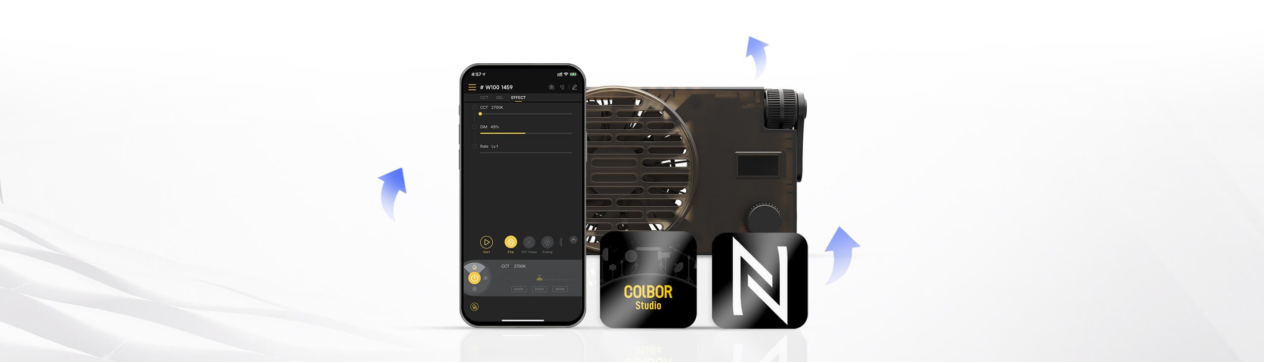 | 色溫範圍 | W100: 2700K-6500K (±150K) W100R: 2700K~6500K (±200K) + RGB |