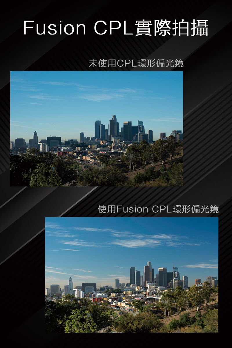 環形偏光濾鏡CPL使攝影師在創建圖像後無法實現創意的相機內效果。 CPL除了濾除水分和污染大氣中的光以外,還可以過濾水和玻璃等非金屬表面的反射。 通過旋轉濾鏡方式,您可以選擇實現創意效果所需的正確過濾量,且非常滑順好控制。 這樣可以使天空更藍,葉子更綠,減少或消除反射,並最終圖像更清晰。