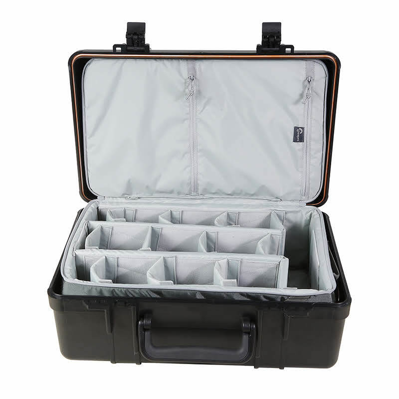完全密封,箱子周圍填充矽樹脂軟墊,昂貴的裝備無須擔心入塵的問題。