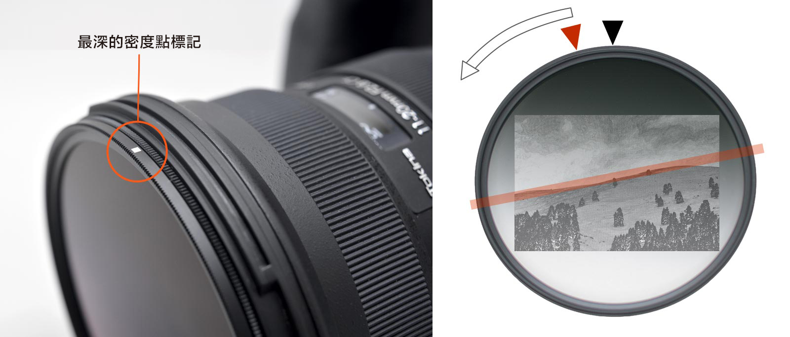 HOYA PROND GRAD 濾鏡可以旋轉,讓攝影師根據構圖,調整減光漸變方向。