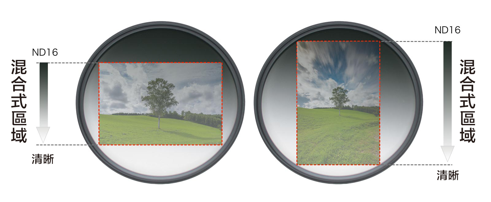 ND16 ND32 兩種密度選擇,在最暗的區域分別提供 4 級和 5 級減光效果。