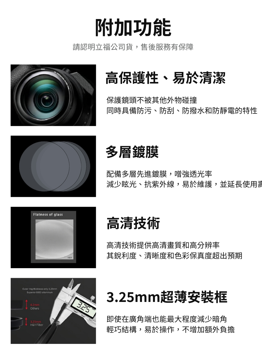 ■ 高清技術維持濾鏡的高平整度、解析度