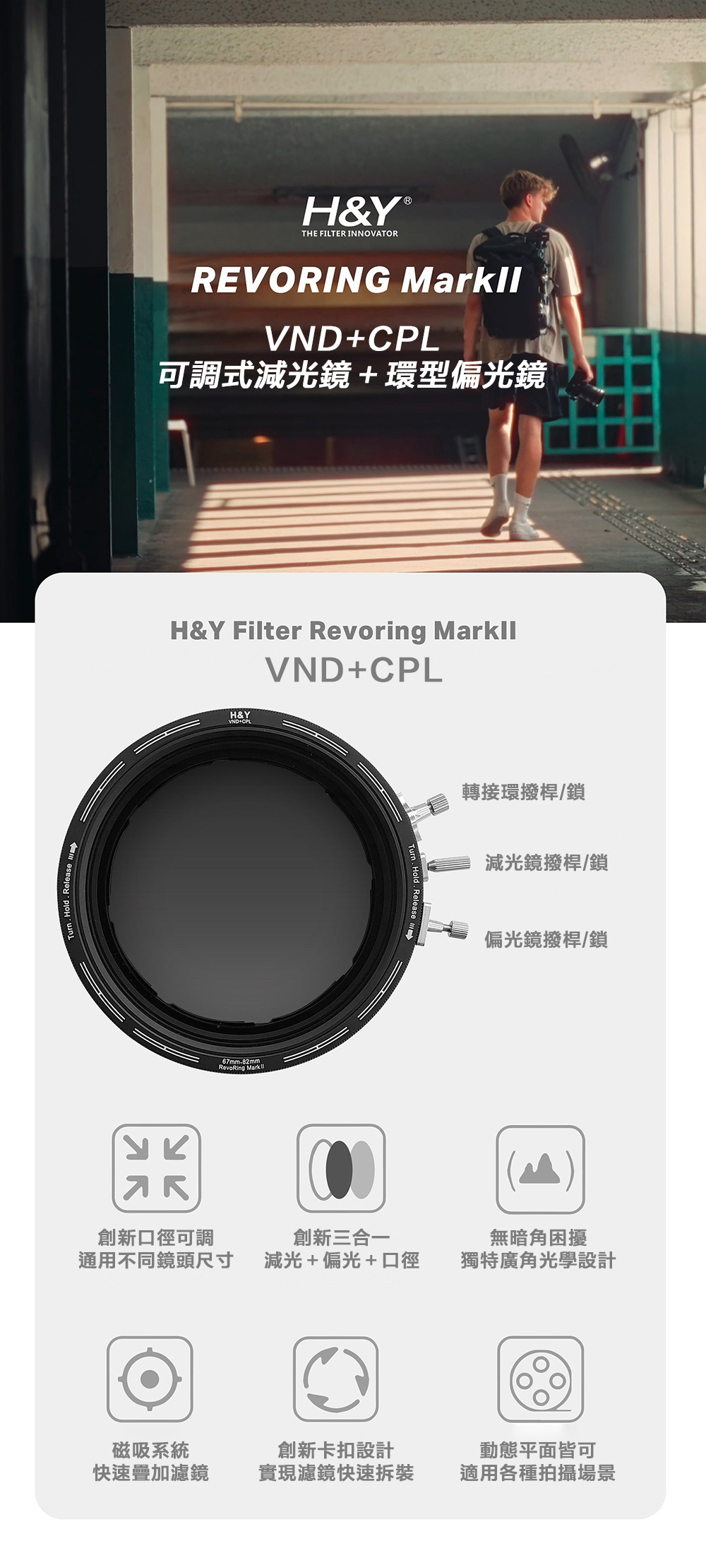 H&Y再次引領污染物創新,成為首間將可調式減光鏡(VND)與圓偏光鏡(CPL)結合於單一產品的品牌。