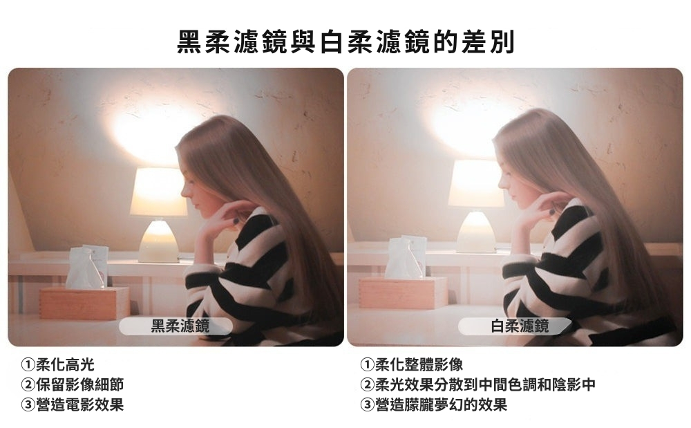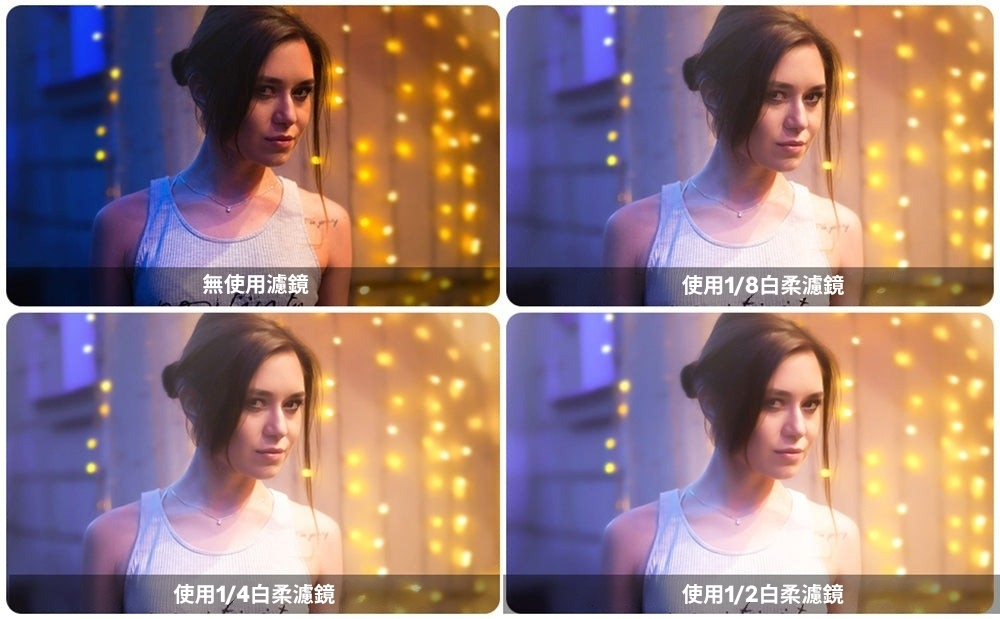 ■ 白柔濾鏡適合柔化光線和降低對比度的場合