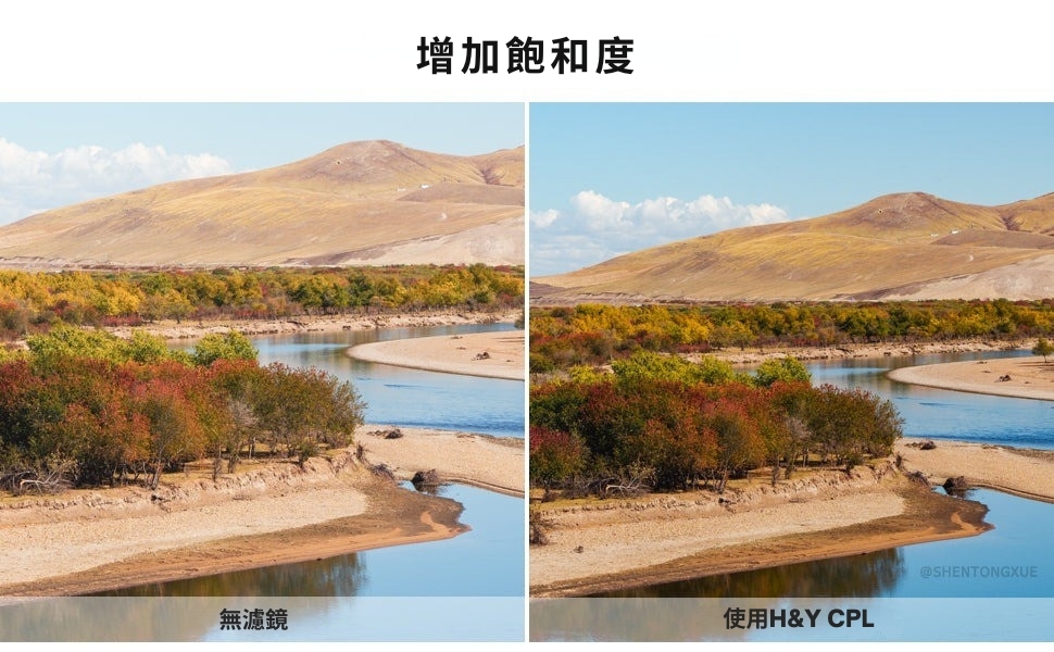 ■ 適合拍攝風景,可以增強天空、樹葉和水的色彩