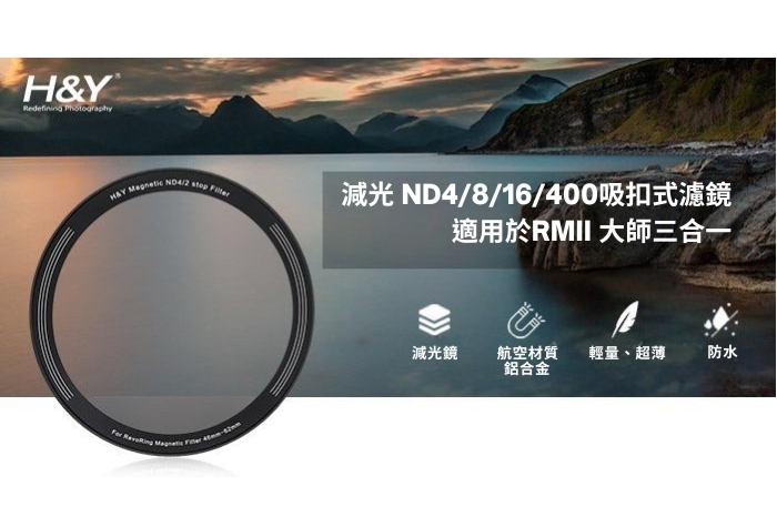 ■ 提供四個檔位:ND4、ND8、ND16 和 ND400