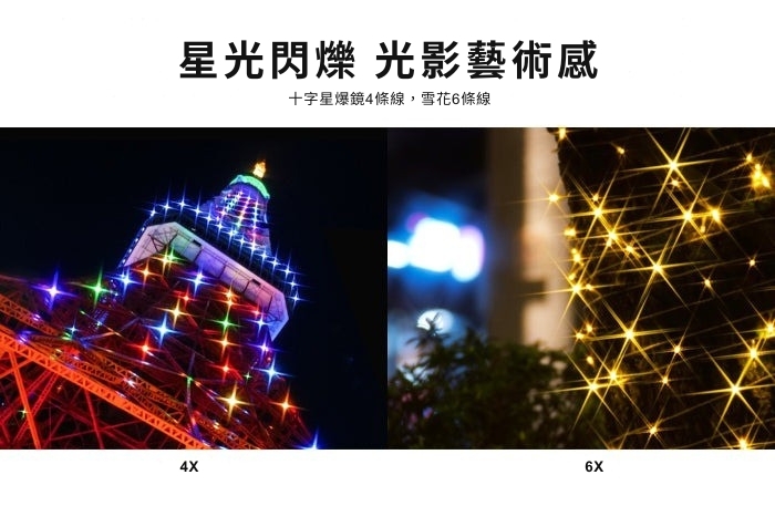 ■ 提供4X / 6X 星芒吸扣式濾鏡