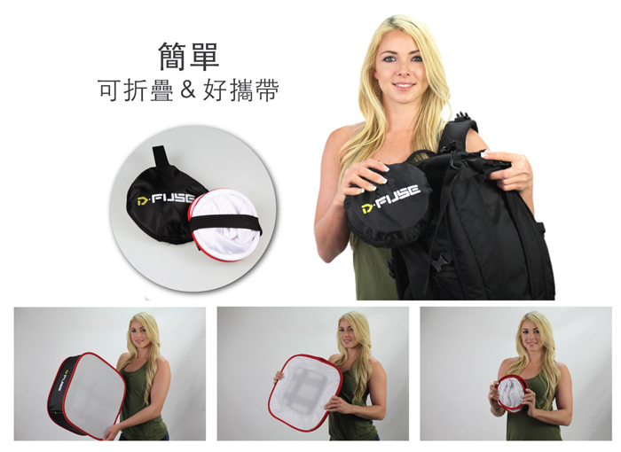 帶著笨重的柔光罩已經是過去式了,現在您所需要的即是D-Fuse輕便柔光罩。