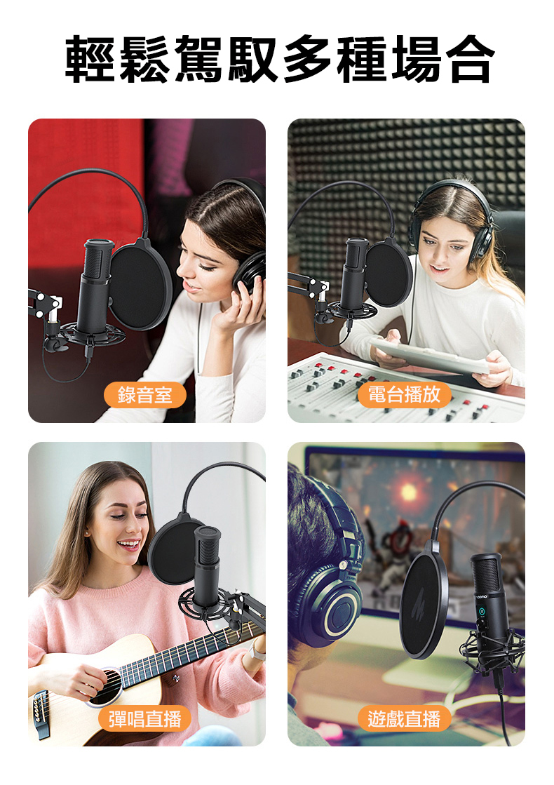 錄音室、電台播放、彈唱直播、遊戲直播..等等