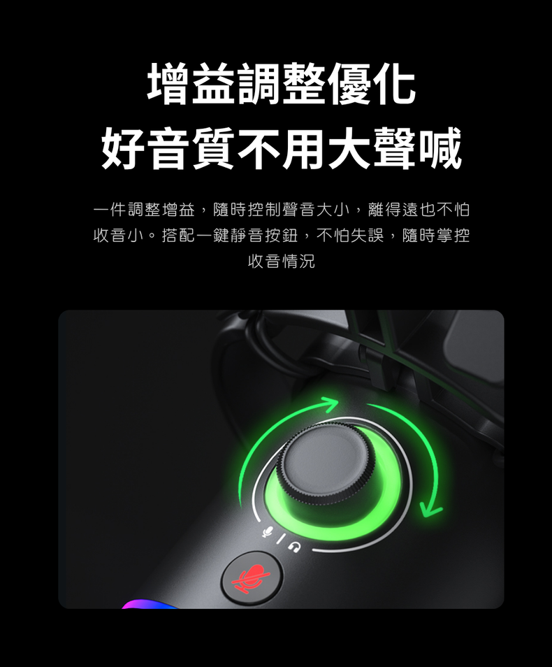 - 個性化 RGB 燈效,營造獨特的直播氛圍