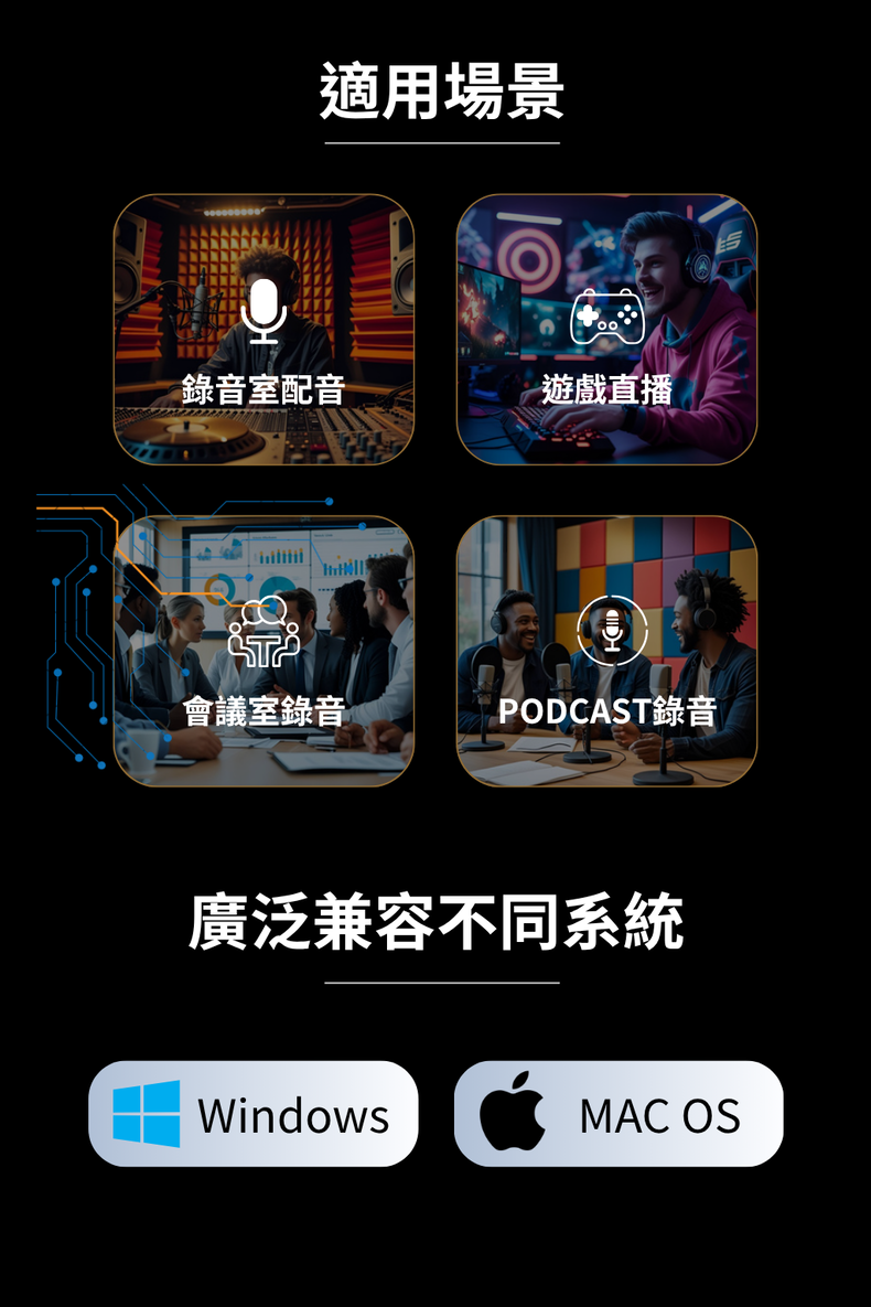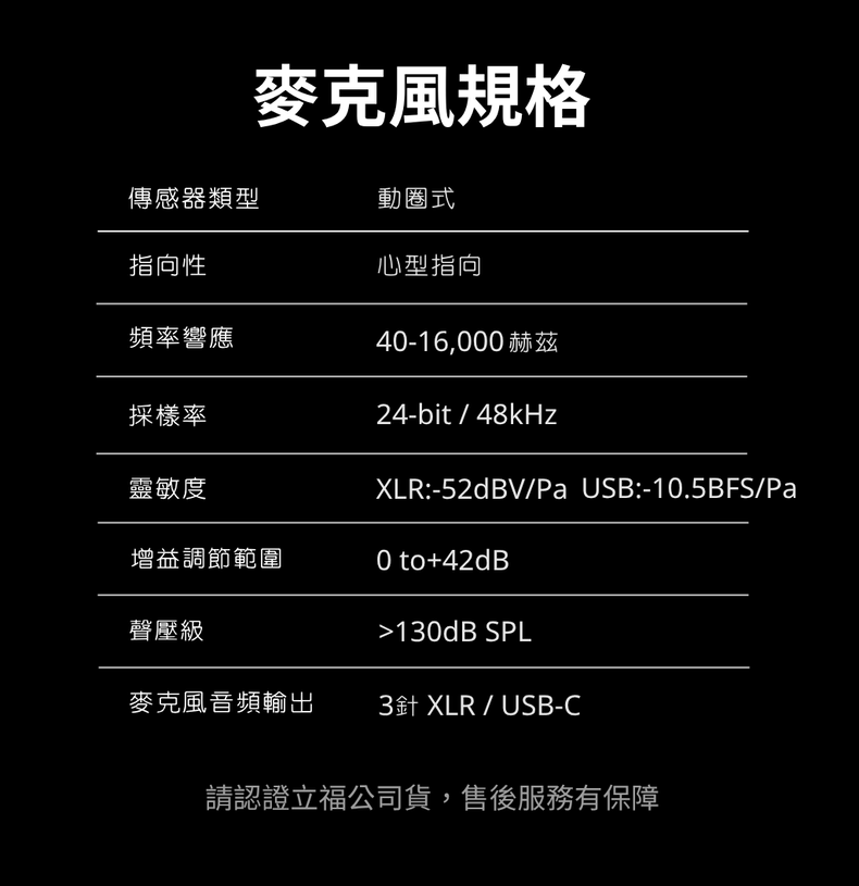 - USB 和 XLR 雙重連接,適應多種設備與應用場景