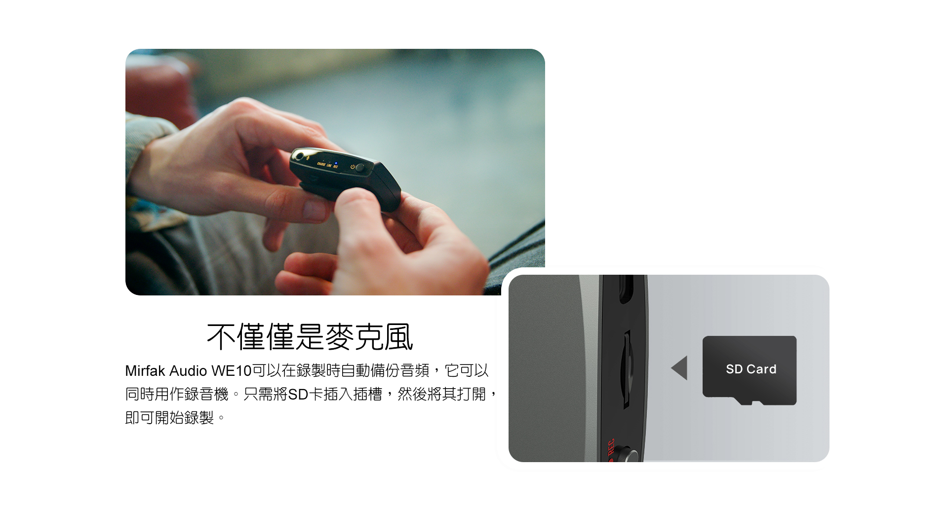 ■ 輕巧型無限麥克風,收音距離30米