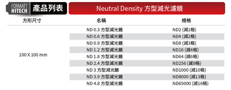 Neutral Density 方型減光濾鏡
