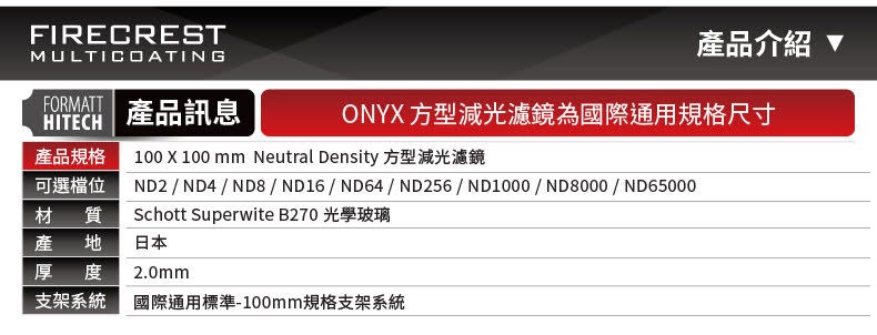 不僅如此,ONYX系列還提供市場上最中性的ND濾鏡,以及市場上最專業最深的ND濾鏡,