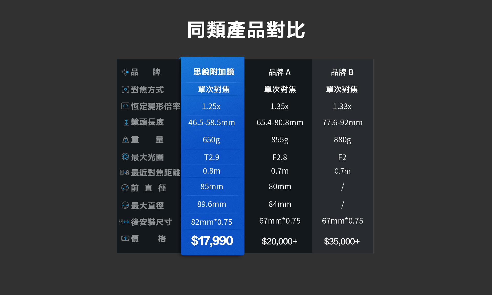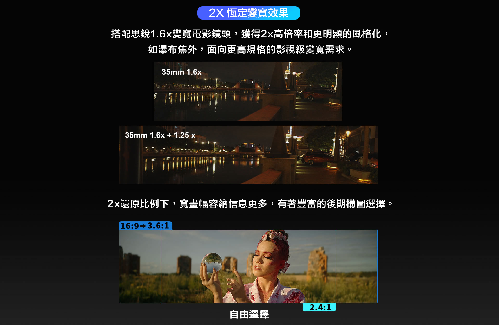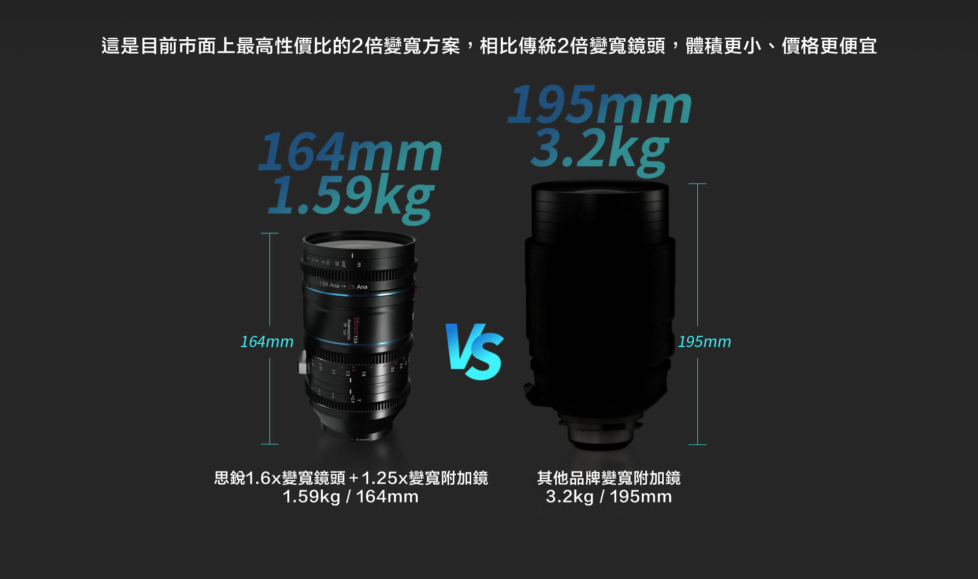 ■ 相比傳統2倍變寬鏡頭,體積更小、價格更便宜