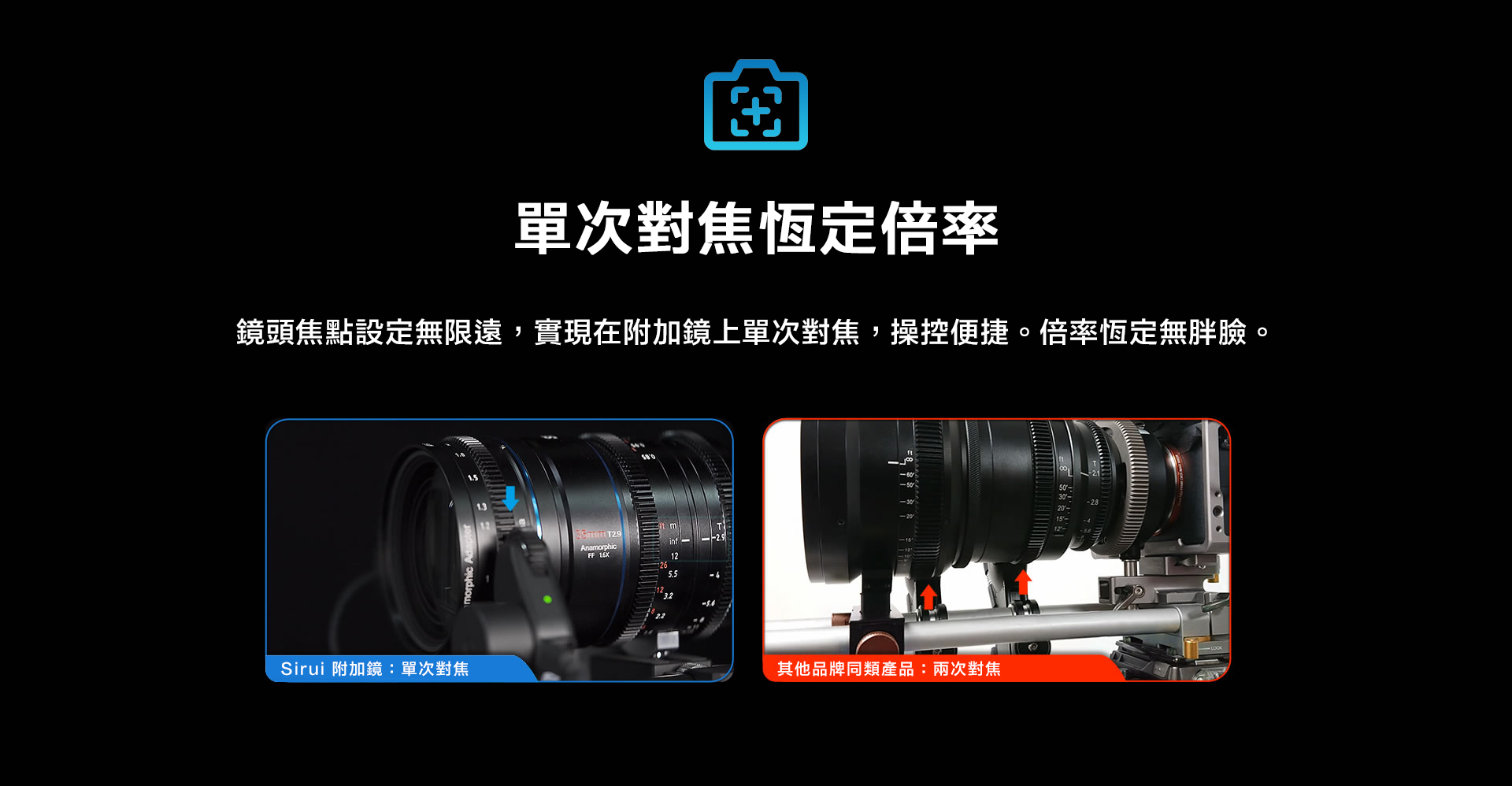 ■ 在附加鏡上單次對焦,操控便捷。倍率恆定無胖臉。