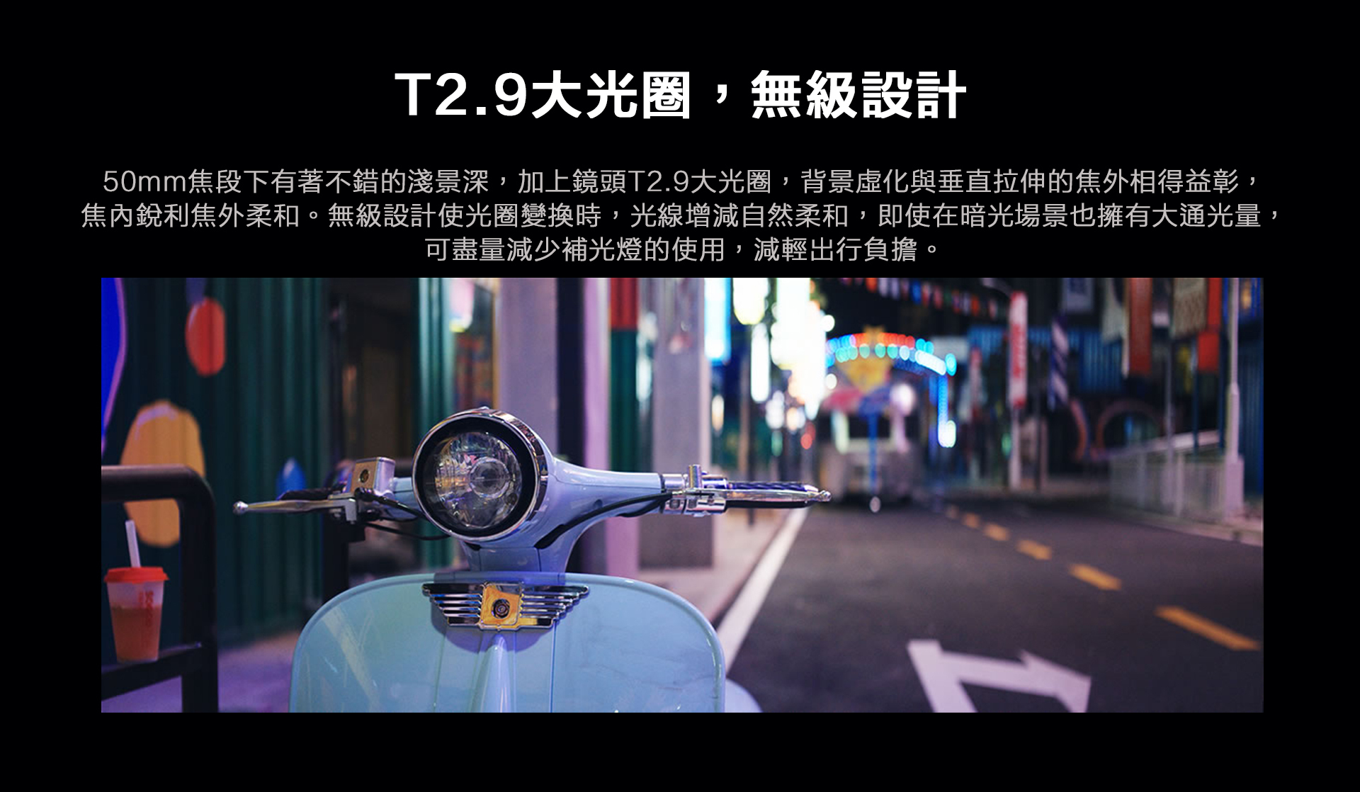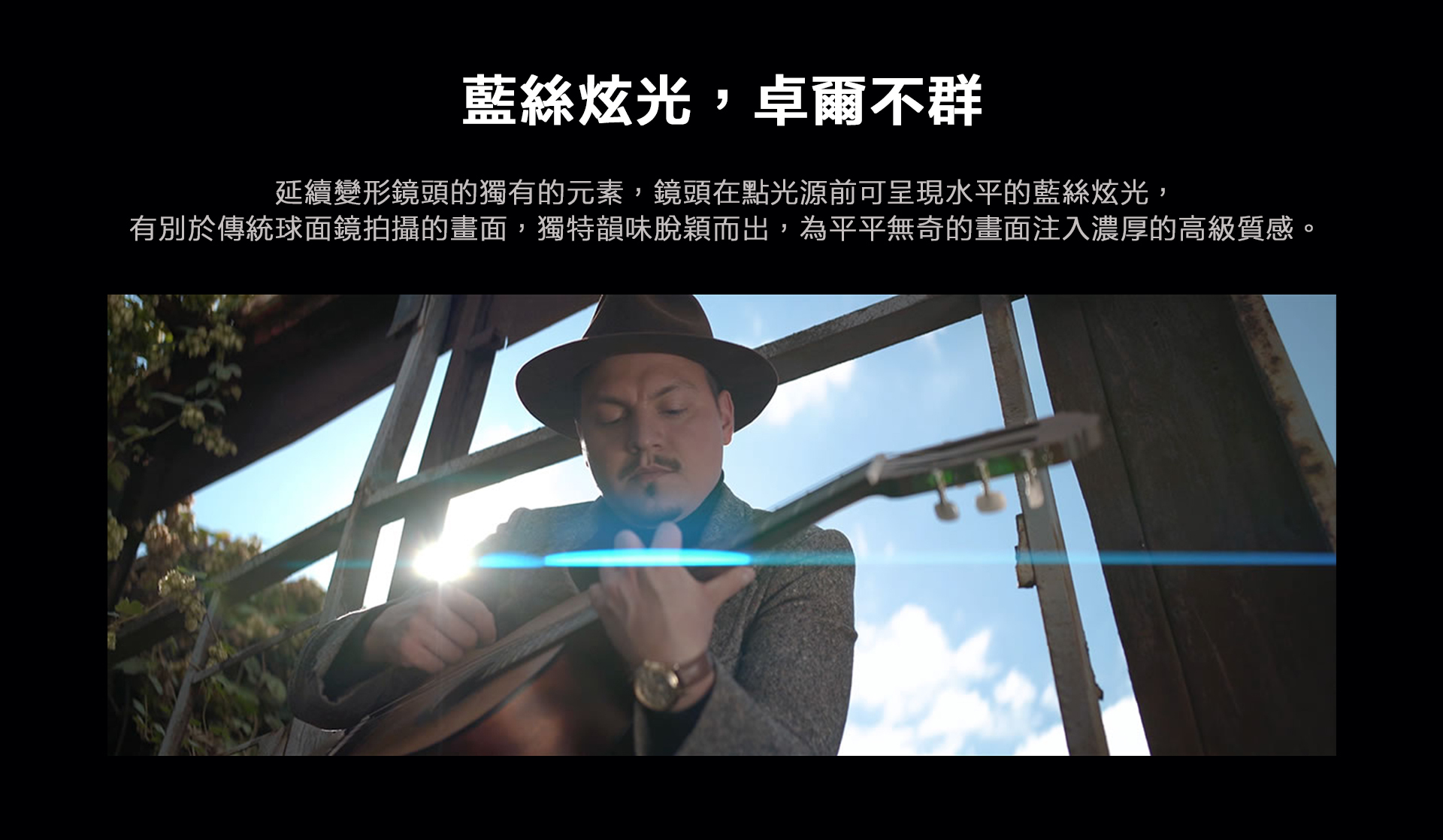 ■ 鏡頭在點光源前可呈現水平的藍絲炫光