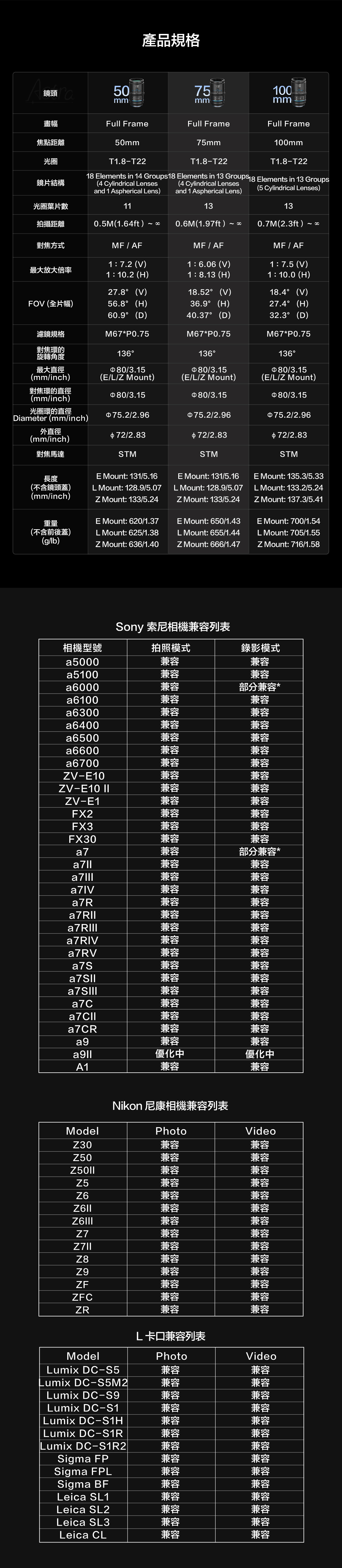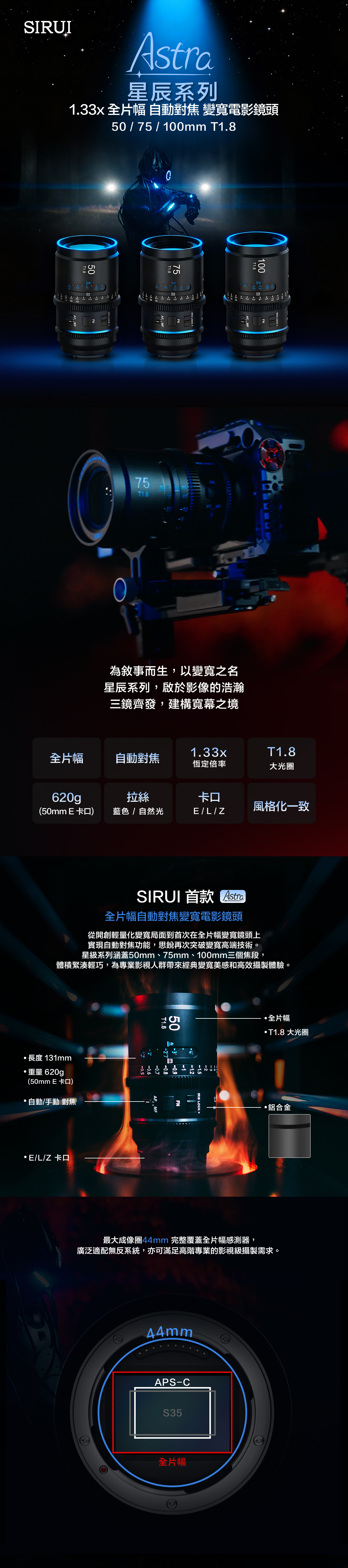 ■ 超大光圈T1.8 / 620g輕量設計