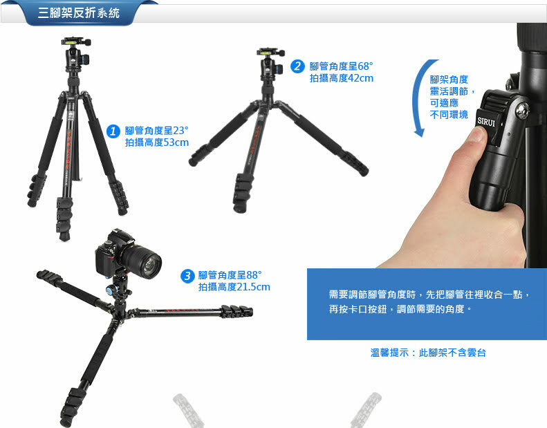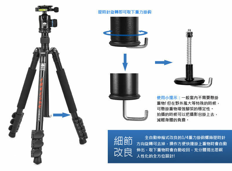 5. 三支腳都配有自動角度調節按鈕,操作快捷、方便;