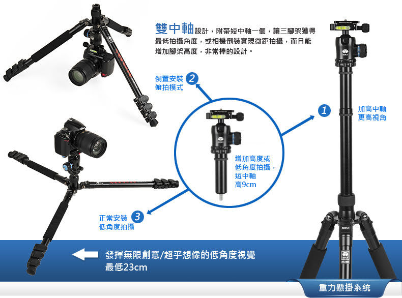 6. 配送短中軸,可進行低角度和微距拍攝;
