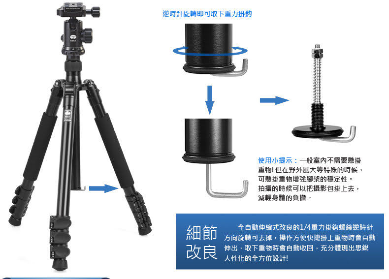5. 三支腳都配有自動角度調節按鈕,操作快捷、方便;