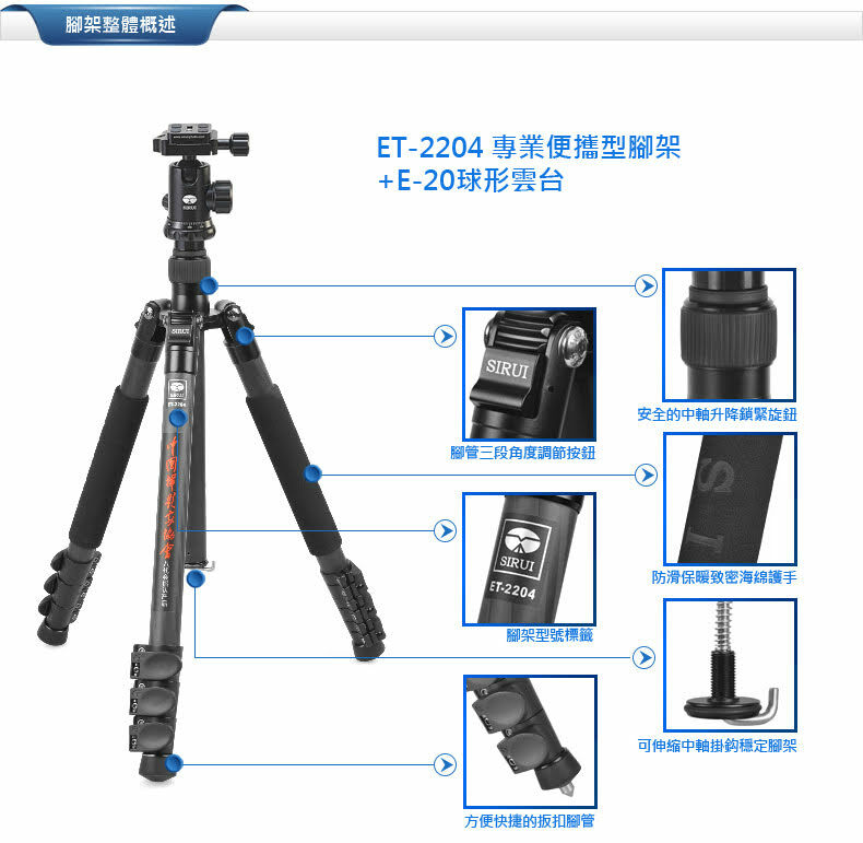 SIRUI ET-2204+E20 思銳碳纖三腳架+雲台套組