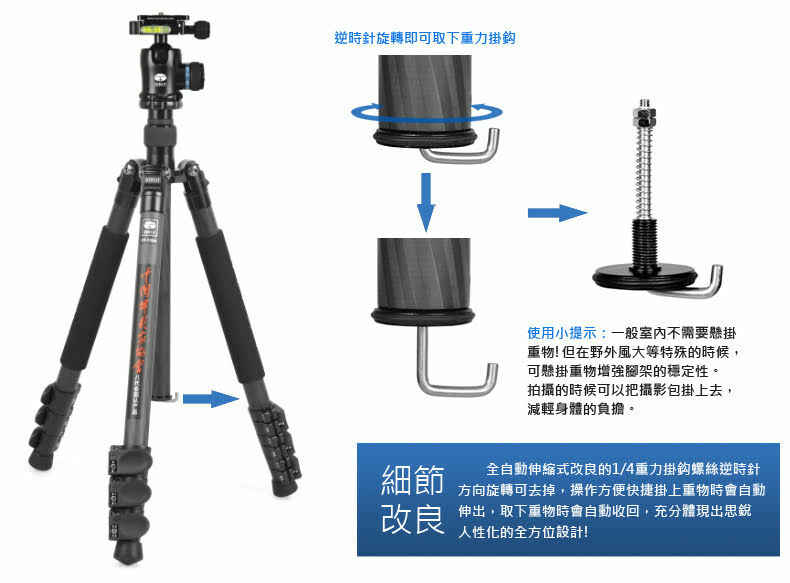 6. 三支腳都配有自動角度調節按鈕,操作快捷、方便;