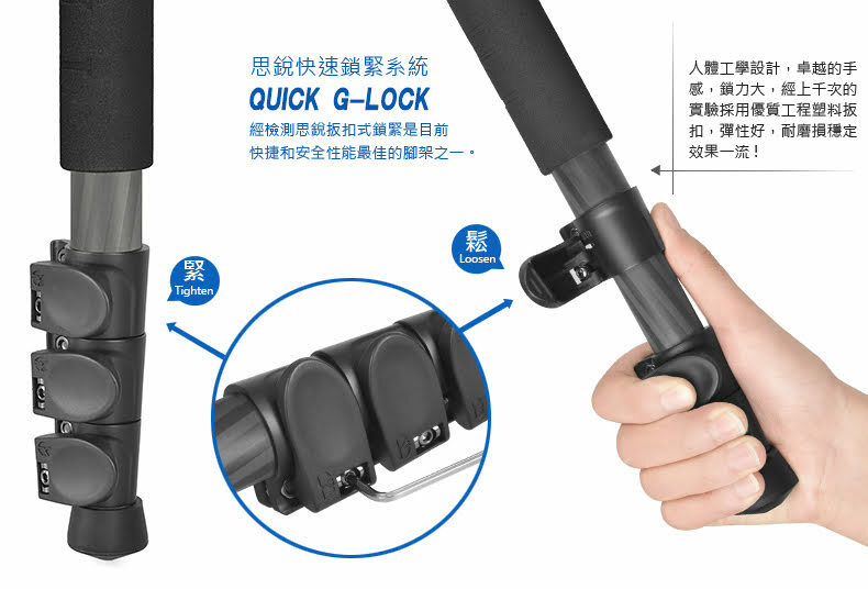 3. 思銳獨特的鎖緊功能設計,鎖緊力達12kg(26.5lb),保證了其鎖緊力優勢。