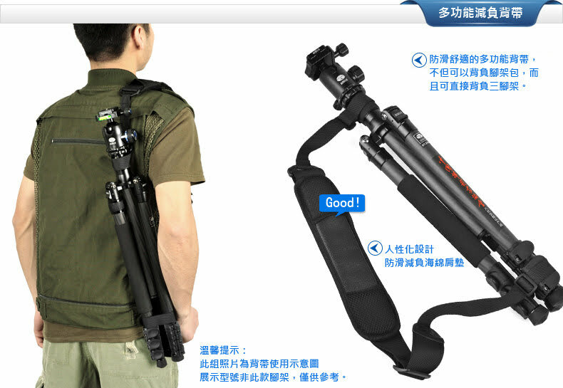 標準配置: 三腳架,雲台,快裝板,短中軸,定制腳架包,肩帶,小工具,說明書,保修卡