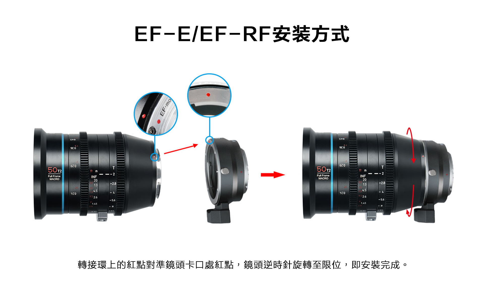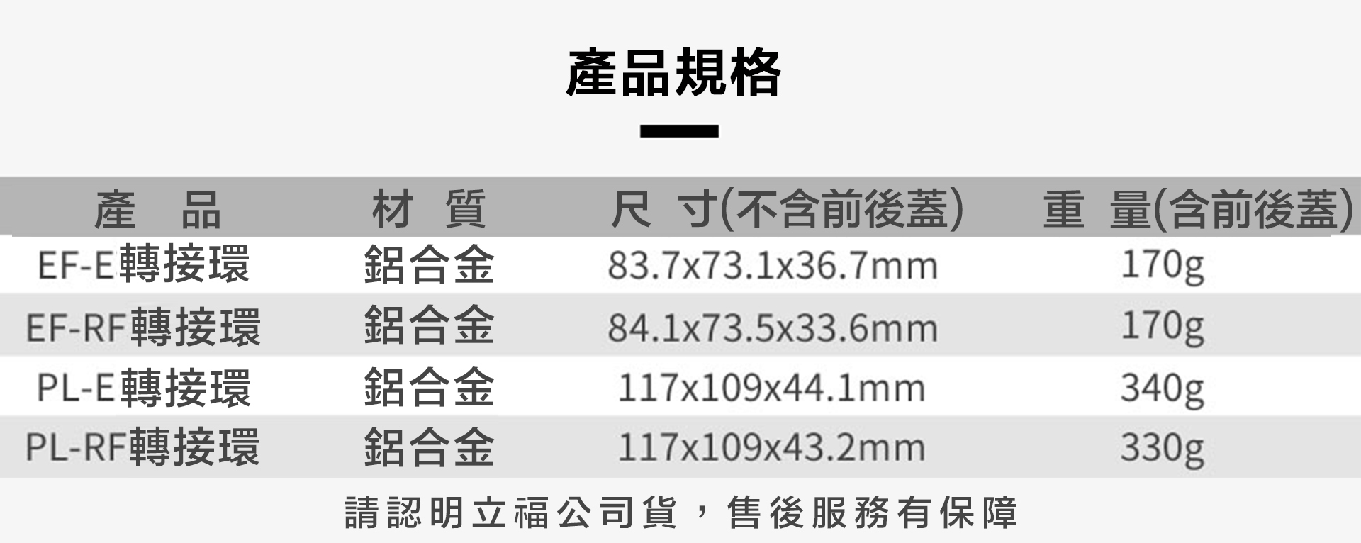 ■ 配備4款轉接環PL-E、PL-RF、EF-E、EF-RF