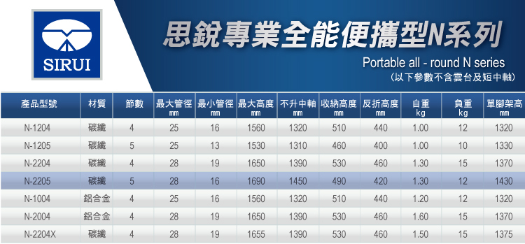 SIRUI N-2205x 思銳 碳纖維三腳架