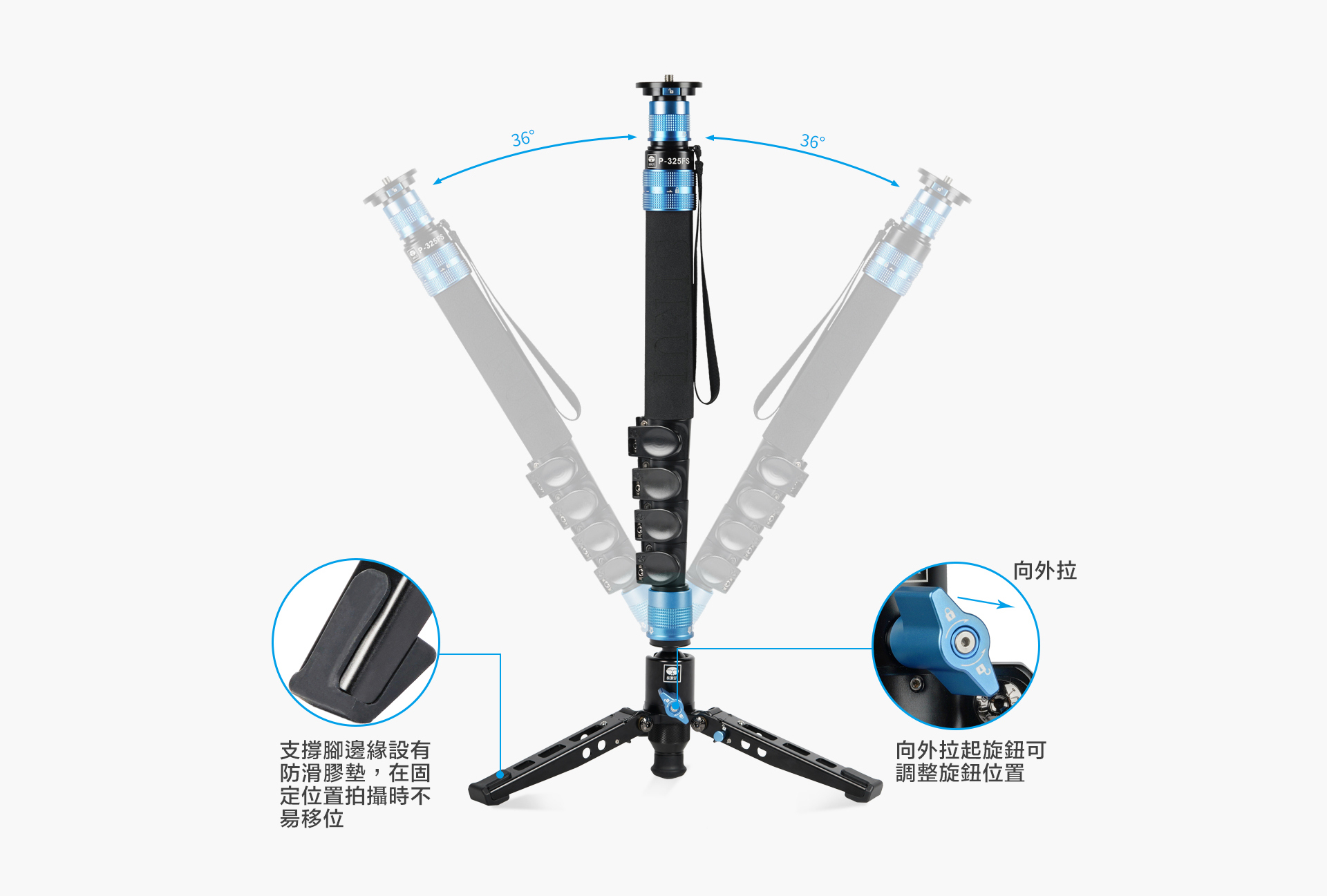 ■ 集合單腳架、延長桿、桌面腳架於一體