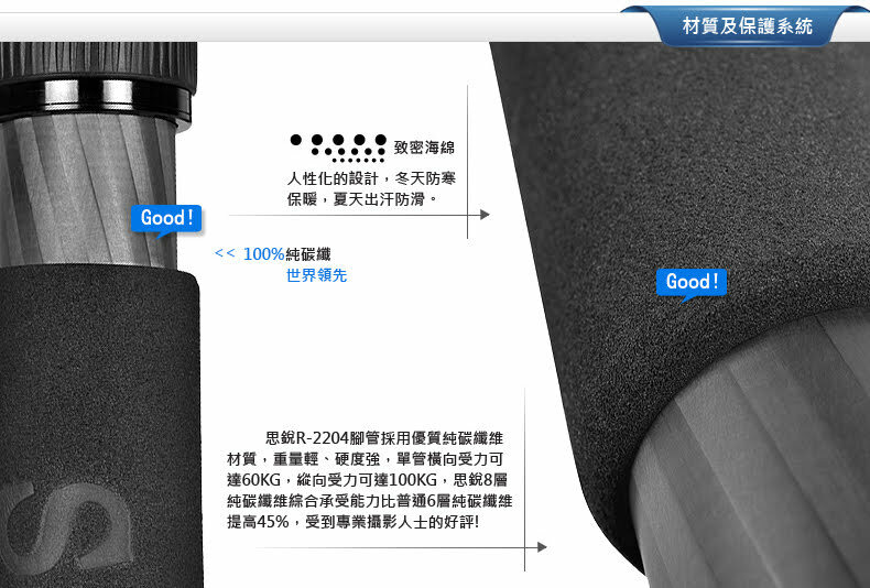 3. 腳管採用8層100%純碳纖維製成