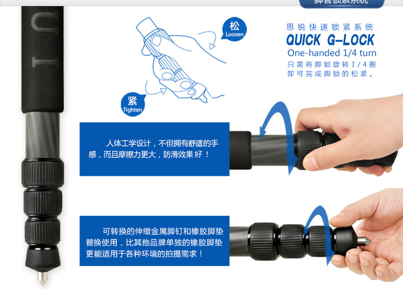 5. 每支腳都有角度調節按鈕,操作快捷、便利。