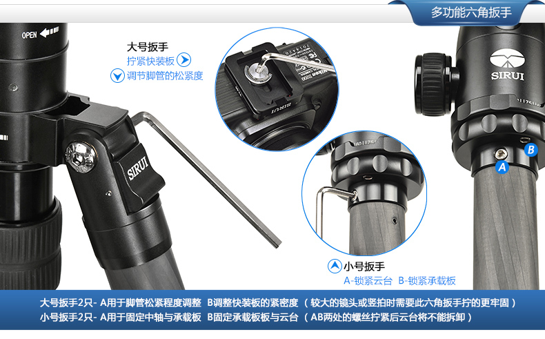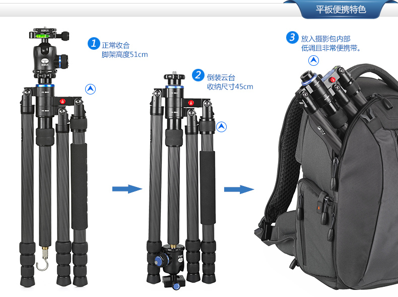 標準配置: 三腳架、腳架包、背帶、短中軸、工具、說明書、保修卡