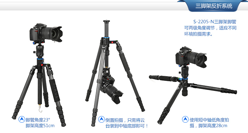 6. 配有短中軸,適合於低角度拍攝和微拍。