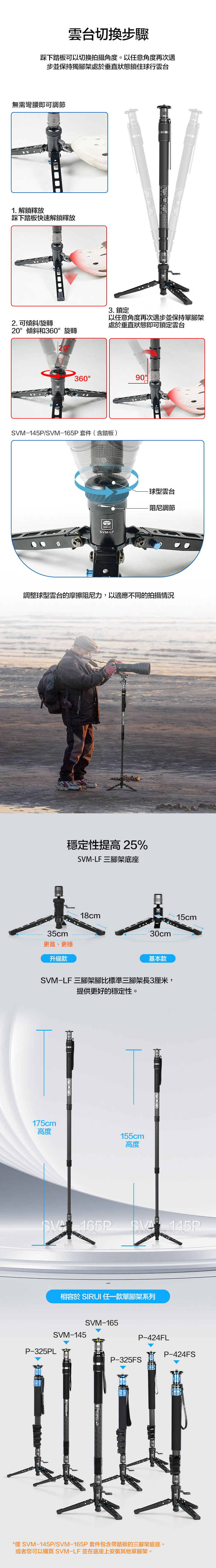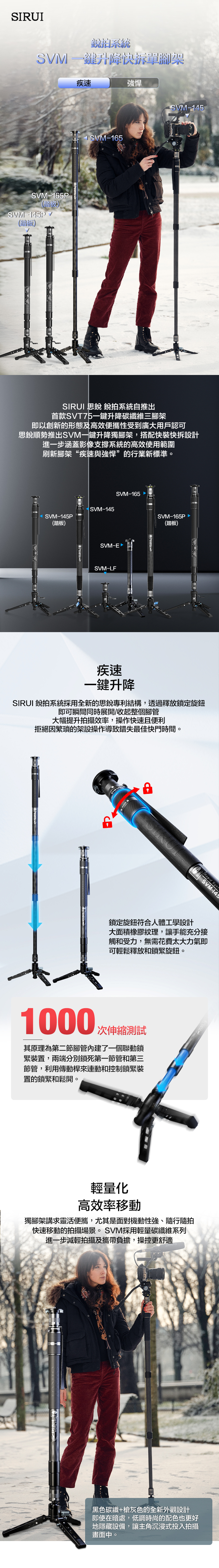 SIRUI SVM-145P / SVM-165P 一鍵升降 碳纖維單腳架