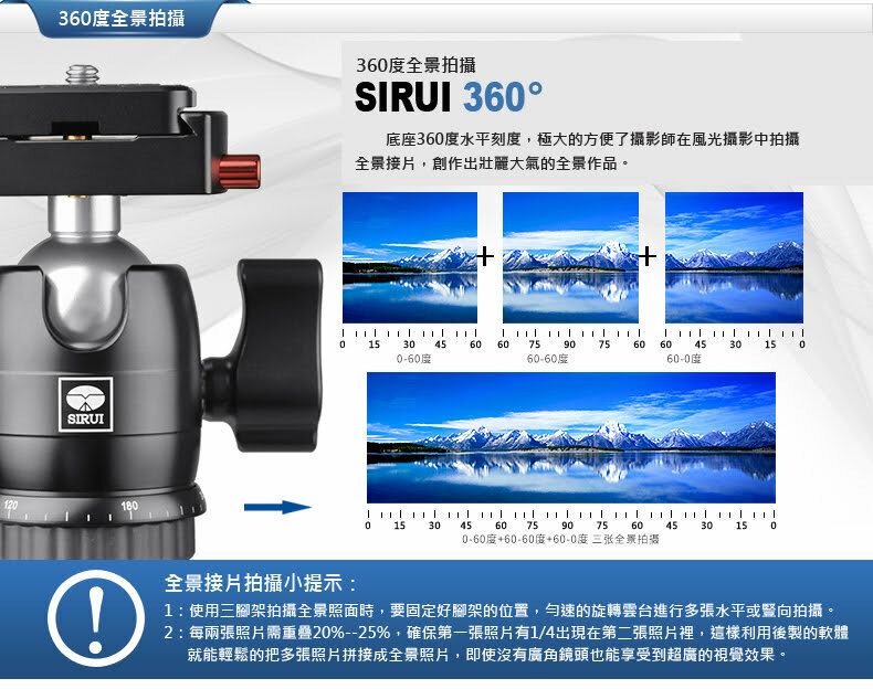 ■ 擁有360度水平底座刻度,便於全景拍攝